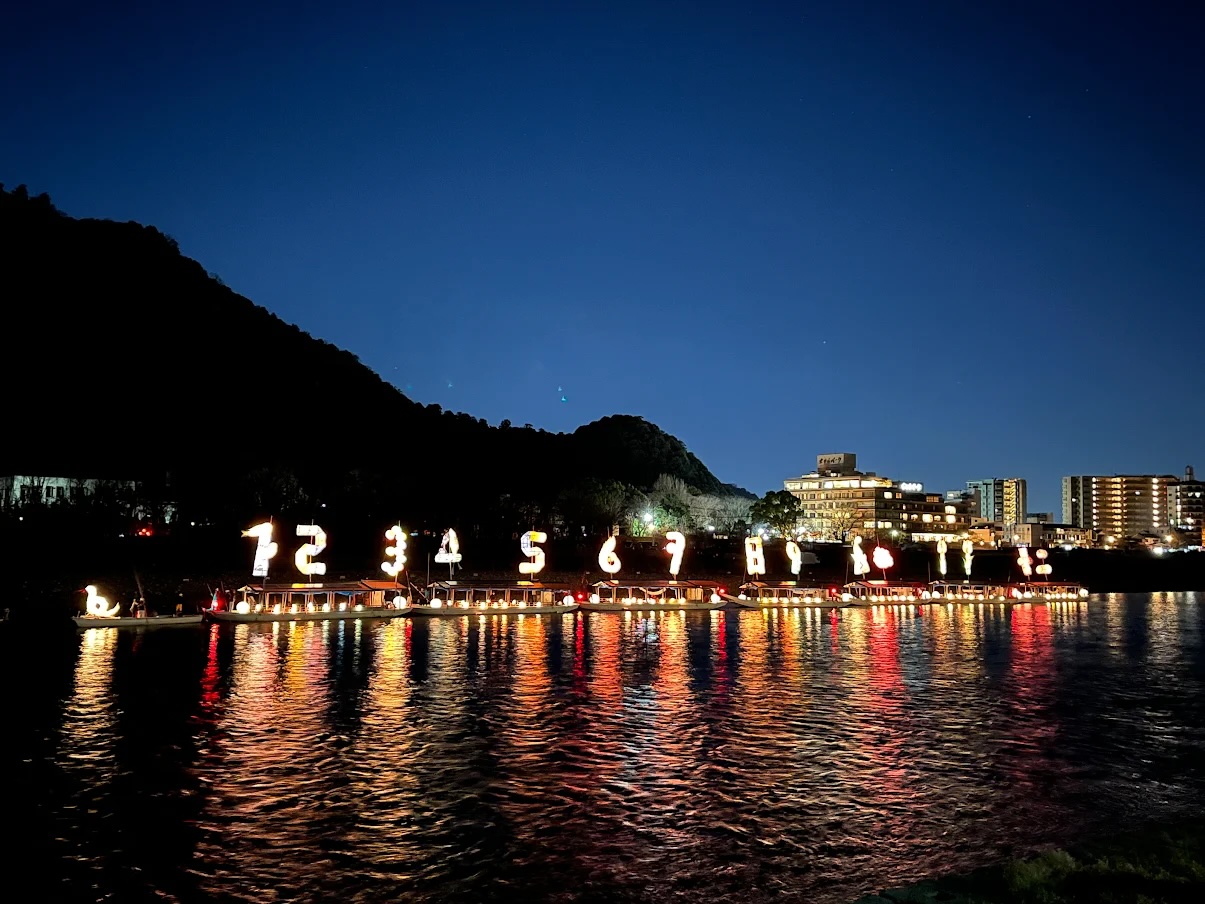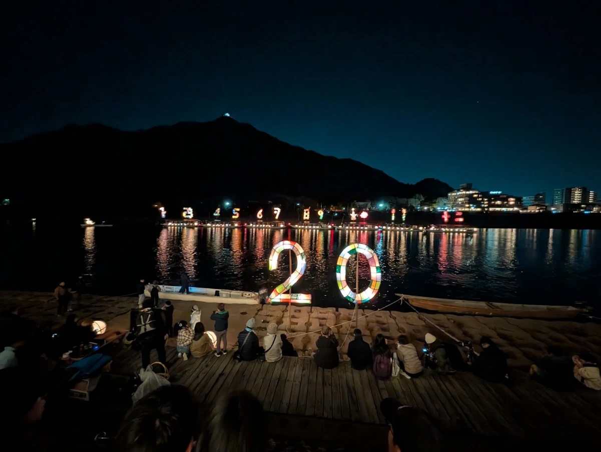 鵜飼で有名な岐阜・長良川、一年でいちばん夜が長い冬至の日に、和紙と竹でつくった1から12の数字とその年の干支をかたどった巨大な行灯を浮かべ、過ぎゆく1年に思いをはせました。